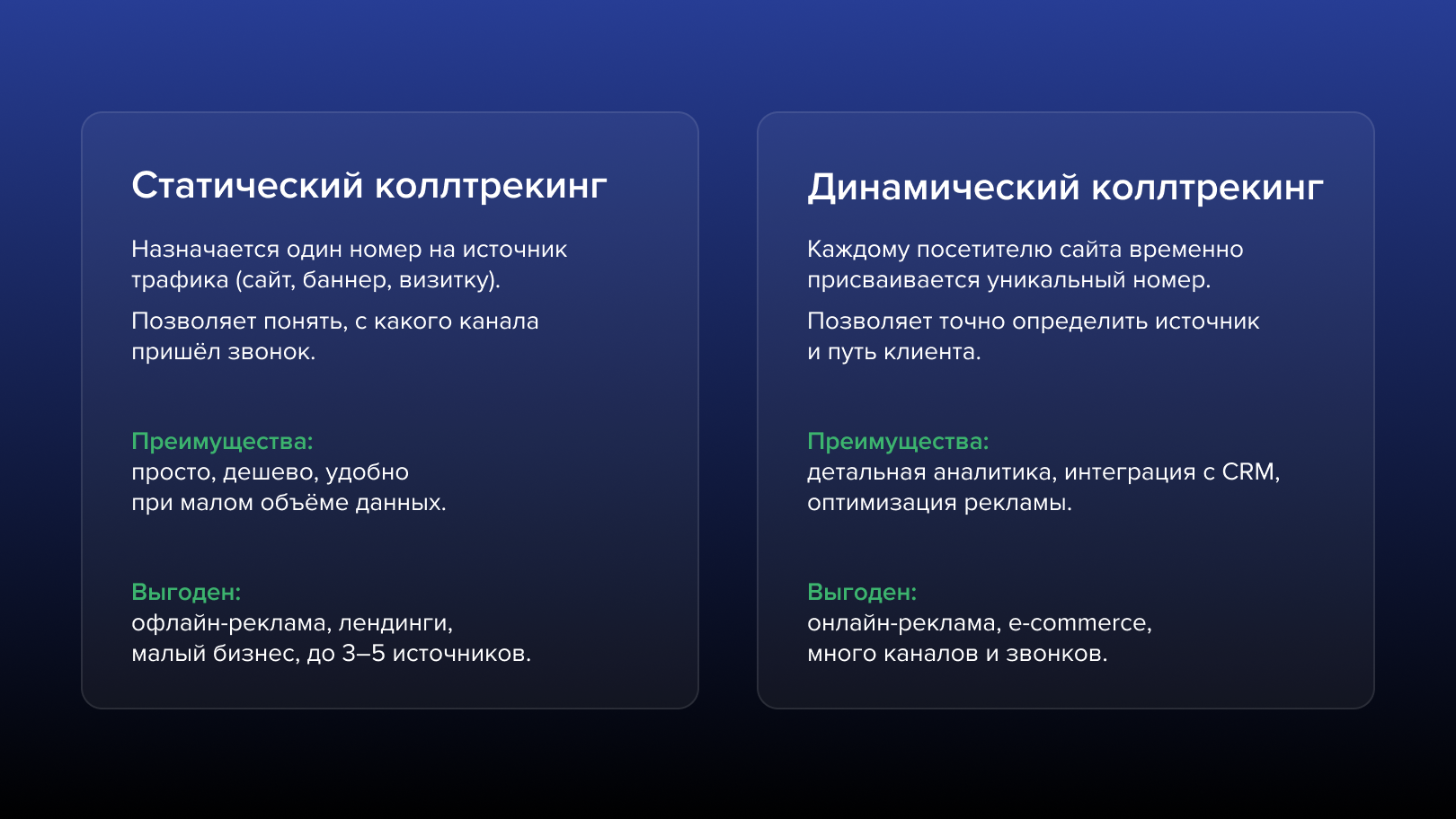 - Через UTM-метки звонков система точно определяет, из какой рекламы пришёл звонок, и связывает звонок с конкретной кампанией.