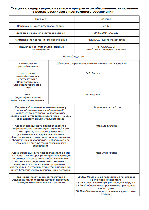 RETAILIQA - это облачная платформа для мониторинга цен, операционного аудита, контроля качества работы торговых точек, ее...